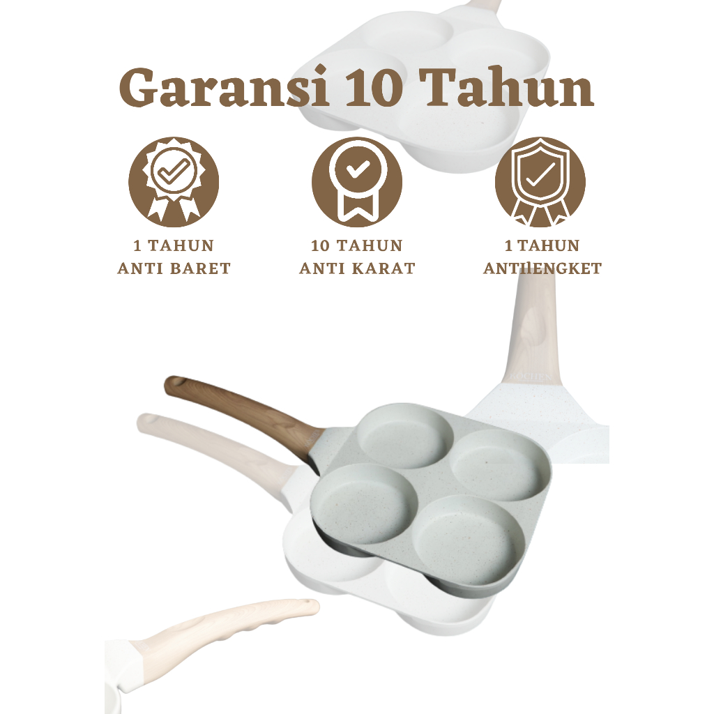 KOCHEN Egg Pan Wajan 4 Lubang Pancake Dorayaki Anti Lengket Telur Mata Sapi Gagang Kayu Kompur Induksi Wajan Penggoreng Telur Fry Pan
