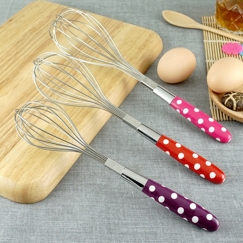 Alat yang berfungsi untuk mengaduk / mengocok adonan / telur * Pegangan terbuat dari plastik dengan berbagai macam motif * Bahan Stainless Steel Anti Karat, Anti Magnet, Anti Hitam * Sangat Aman digunakan untuk jangka panjang *UKURAN.M * Panjang -+25.5cm * Diameter -+5cm *UKURAN.L * Panjang -+28cm * Diameter -+6cm