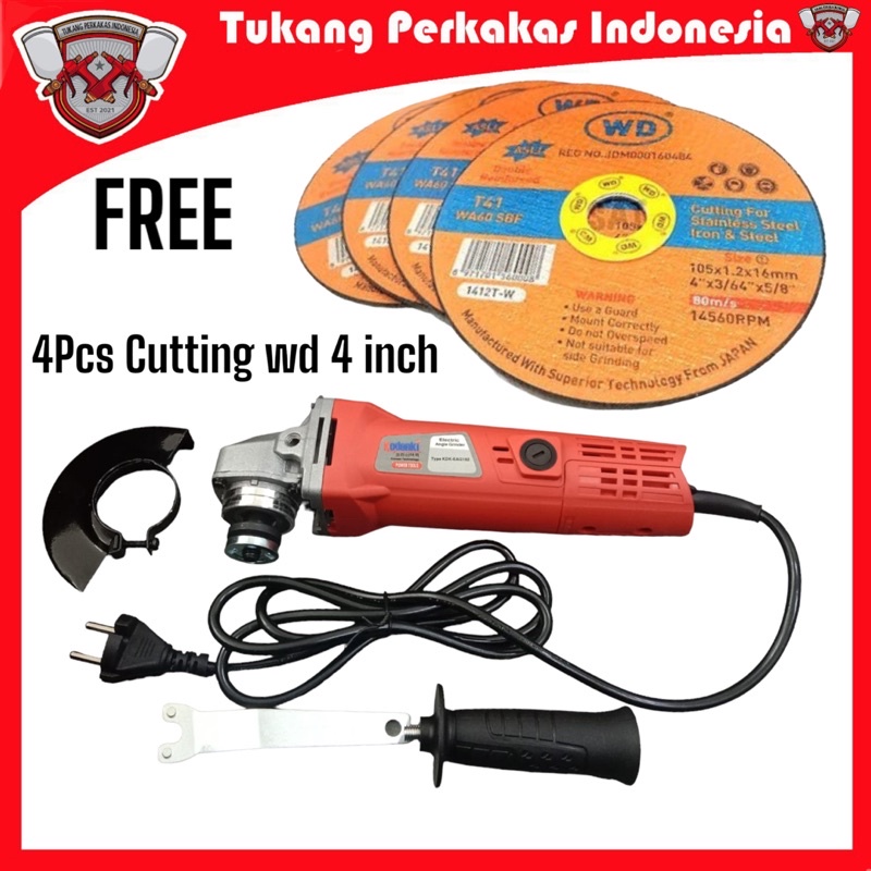 Perlengkapan Rumah > Perkakas > Gergaji, Mesin Pemotong, & Gerinda > Kodenki mesin gerinda tangan 4 inch Free 4 pcs batu potong Wd 4 inch Grenda gerenda