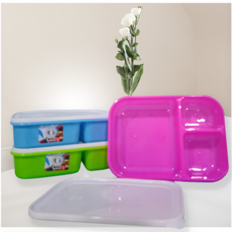 Perlengkapan Rumah > Peralatan Dapur > Tempat Penyimpanan Makanan > Koi Official - Lunch Box Serbaguna Makanan Sekat 3 / Kotak Plastik Tempat Bekal 900ml