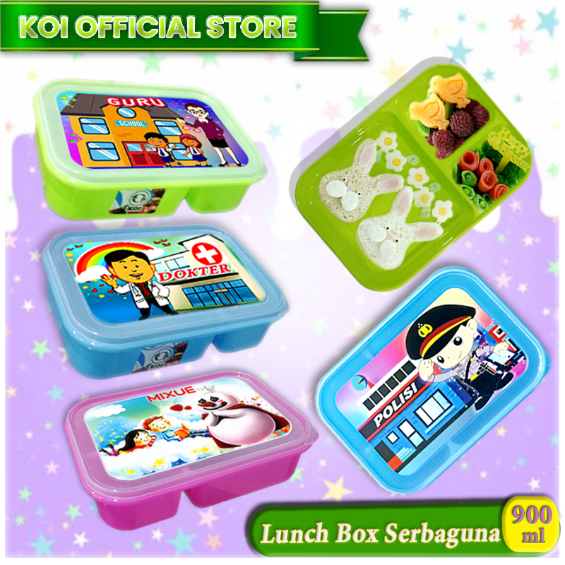 Perlengkapan Rumah > Peralatan Dapur > Tempat Penyimpanan Makanan > Koi Official - Lunch Box Serbaguna Makanan Sekat 3 / Kotak Plastik Tempat Bekal 900ml 1/2 dan 1 Lusin