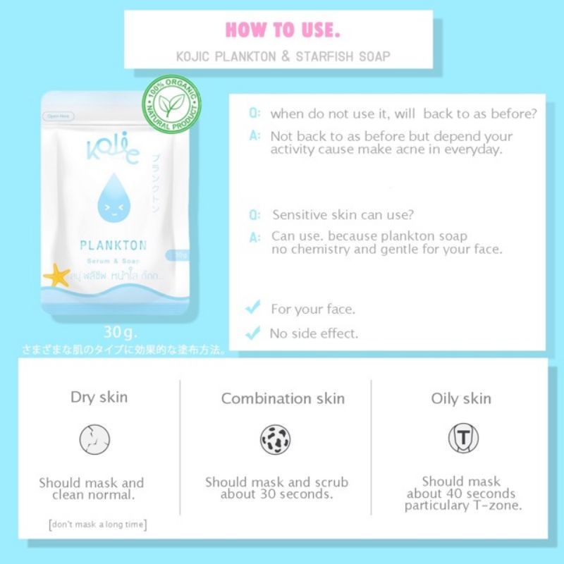 Detail KOJIC FACE SOAP PLANKTON UKURAN 40GR SABUN WAJAH