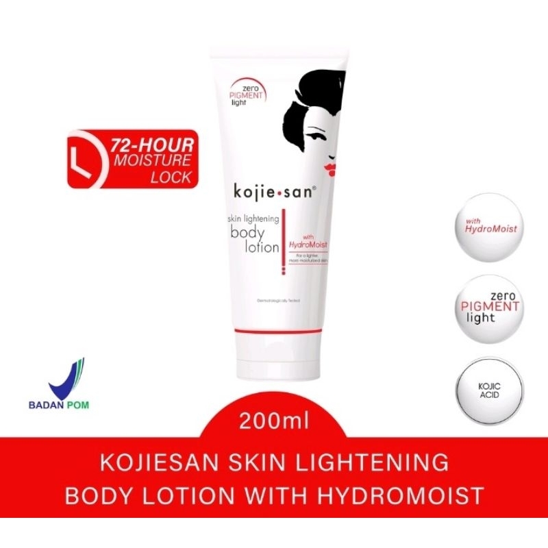 Kojie-San Body Lightening Skin Lotion dengan formula yang ringan dan tidak berminyak sehingga mudah meresap di kulit - Secara mendalam melembabkan kulit, membuat kulit lembut, halus dan terhidrasi hingga 72 jam. - Membantu mengembalikan dan memperkuat pertahanan kulit, mengurangi tampilan kulit yang kasar dan Stretch Marks.
