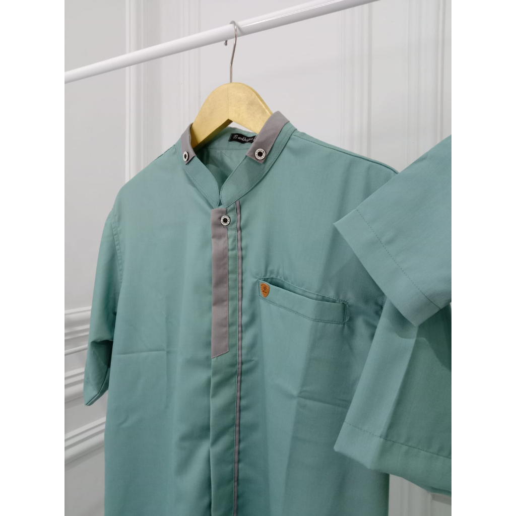 Detail Koko Couple Utsman Sarimbit Biru Wardah lengan pendek