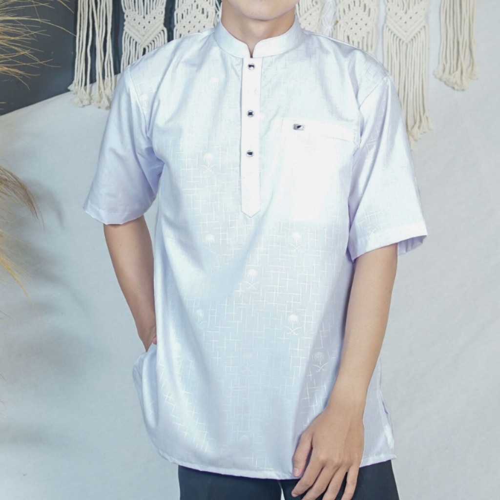 Detail Koko kurta embos pria lengan panjang/baju muslim AL-HARIS