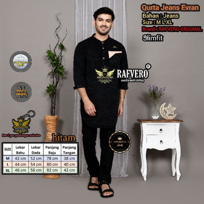 type model : qurta evran - slimfit - bahan : jeans - size : M L XL - brand : ORIGINAL RAFVERO