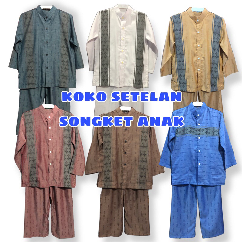 Baju koko anak songket setelan (baju dan celana) Baju muslim laki - laki cocok untuk anak TK dan SD