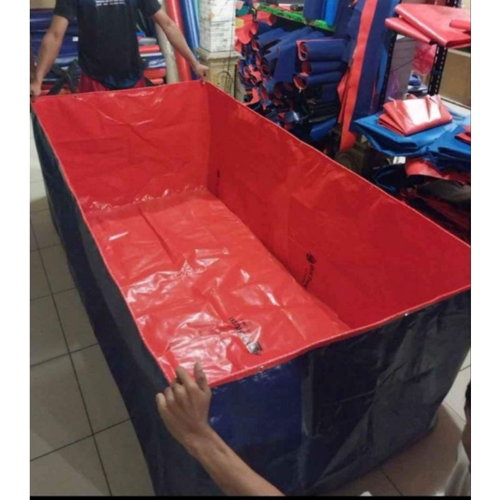 KOLAM TERPAL A12 KOTAK (TEBAL) Kolam terpal adalah sebuah inovasi media budidaya ikan terbaru yang kini sedang ramai dibicarakan dan diaplikasikan oleh para pemiliki budidaya ikan tawar di Indonesia. Kolam terpal digunakan untuk pengaplikasian sistem budidaya biofloc pada berbagai macam ikan tawar. Terpal PE A15 memiliki ketebalan paling tinggi diantara terpal lainnya, sehingga akan mampu bertahan (dengan pemakaian normal) sampai 4-5 tahun pemakaian, dengan kondisi cuaca ekstream sekalipun.