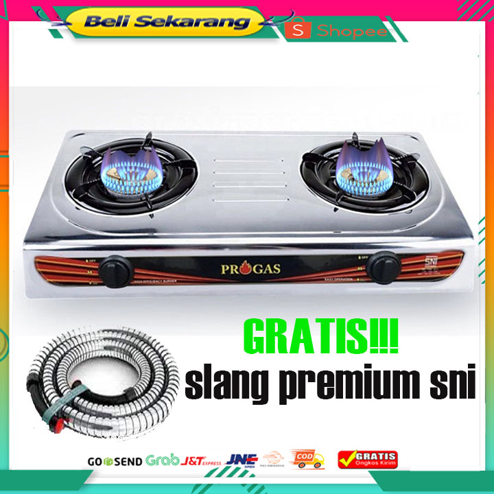 Perlengkapan Rumah > Peralatan Masak > Kompor & Regulator Gas > Kompor Gas 2 Tungku Premium Progas SNI + selang ori Garansi Resmi PG-269 stenlis super mewah mantap