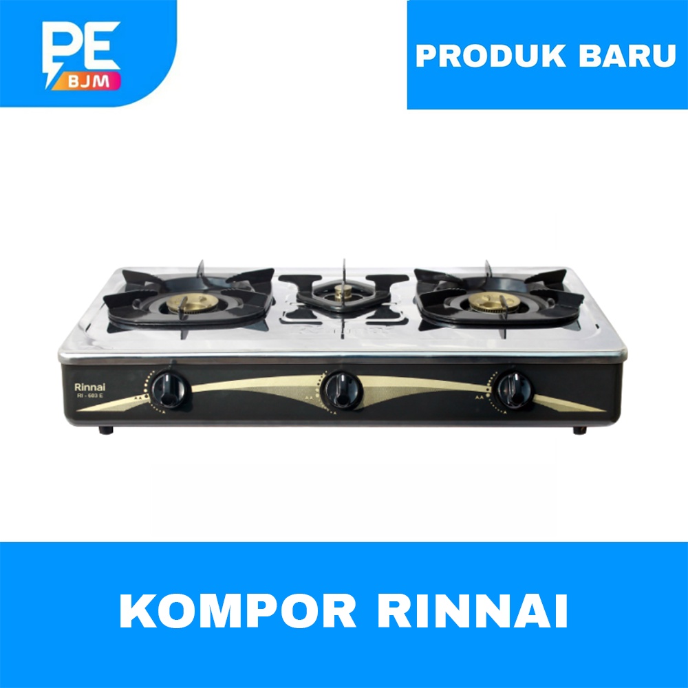 Kompor Gas Rinnai RI-603E Kompor gas tiga tungku Rinnai RI-603E mempermudah Anda untuk memasak dalam jumlah banyak sekaligus. Dibuat dengan bahan stainless steel yang kuat dan tahan karat. Masak akan lebih cepat dan hemat dengan kompor ini karena konsumsi gas yang rendah menggunakan api ekonomis.