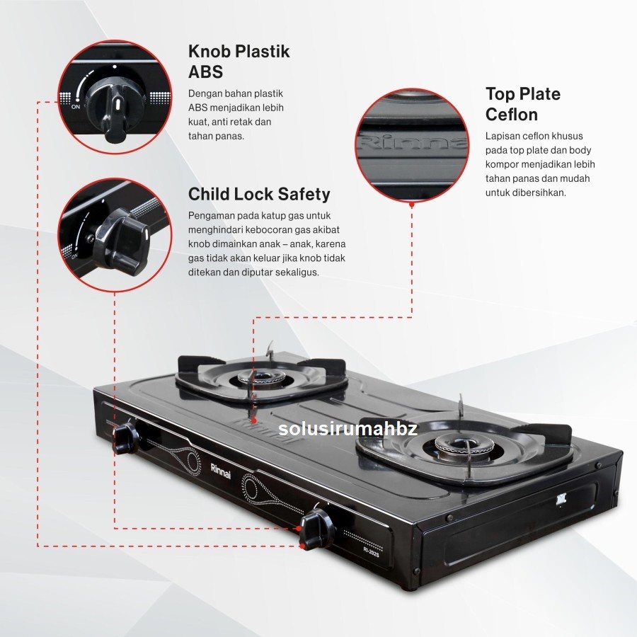 Detail KOMPOR GAS RINNAI 2 Tungku RI-202S Original Rinai 2tungku