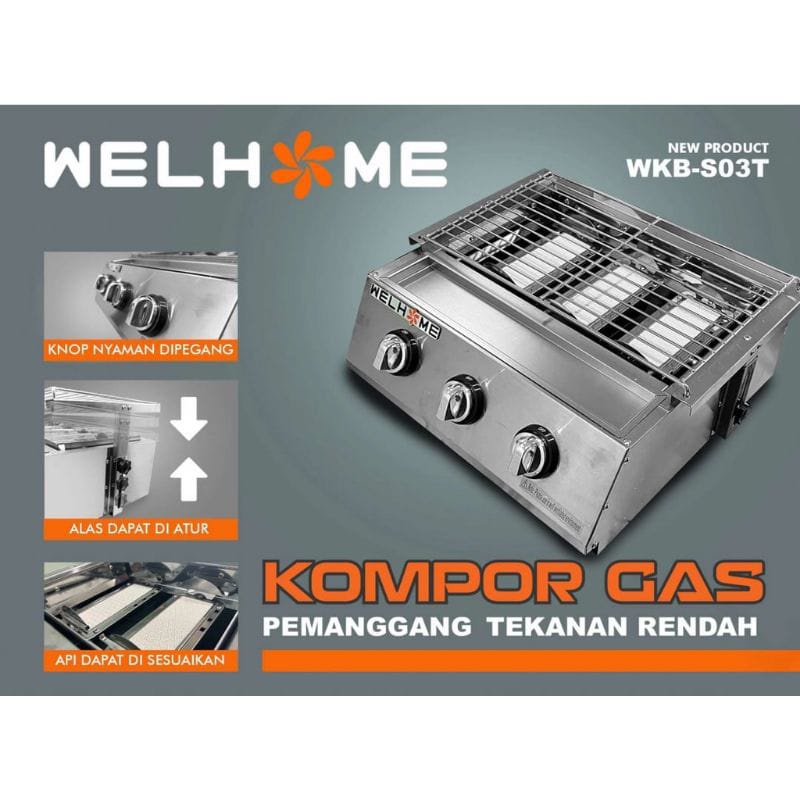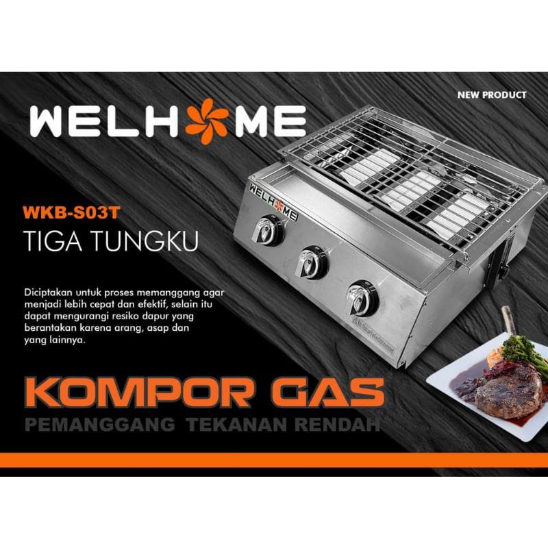 Kompor Pemanggang Welhome WKB-S03T Alat Panggangan Gas, Kompor Panggangan sosis bakar, Panggangan Ayam Bakar, Panggangan Ikan Bakar, Panggangan Sate, Panggangan Multifungsi, Mesin Panggangan Tanpa Asap, Panggangan Roaster Getra