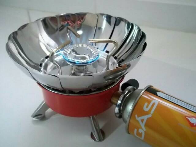 Kompor Camping Portable ini sangat berguna untuk memasak di alam terbuka karna tahan dari tiupan angin dengan kembang metal yang bisa dikuncupkan atau dikembangkan pada sisi sisi perapiannya.