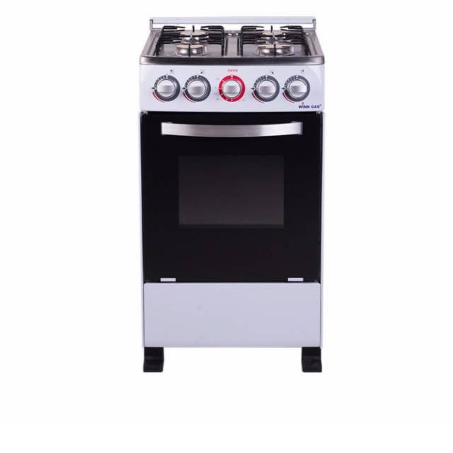 Winn Gas Freestanding Kompor 4 Tungku+Oven W-5060 Jumlah Tungku: 4 tungku dan Oven Tekanan Kerja Gas: Low Pressure 5 Pemantik single jet: Belakang Kiri, Depan Kiri, Oven, Depan Kanan Belakang Kanan Plat berlapis kaca Plat anti karat dan berlapis enamel anti karat Knob tanpa pemantik (awal penghidupan gasnya pakai lighter) Burner Cup Kuningan Praktis dan nyaman digunakan Low pressure Dimensi (P x L x T): 49 cm x 60 cm x 89.5 cm