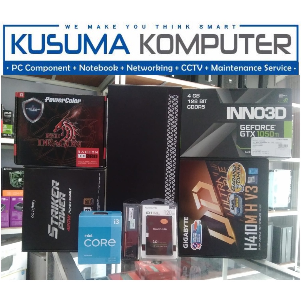 Intel core i3 10105F / 10100f msi mobo h410m / random Venom Rx Ddr4 8Gb pc 2666 / random Ssd adata 120 Gb / random Psu Infinity 420w Casing Venomrx Loki / seri lain