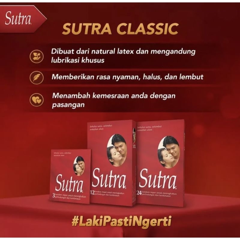 Kondom Sutra Merah: - Tipis dan Transparan - Lateks yang Kuat Untuk Perlindungan Maksimal - Kelembutan Menggoda dari Pelumas Khusus - Telah Teruji Memenuhi Standar Mutu Internasional Tertinggi, ISO 4074
