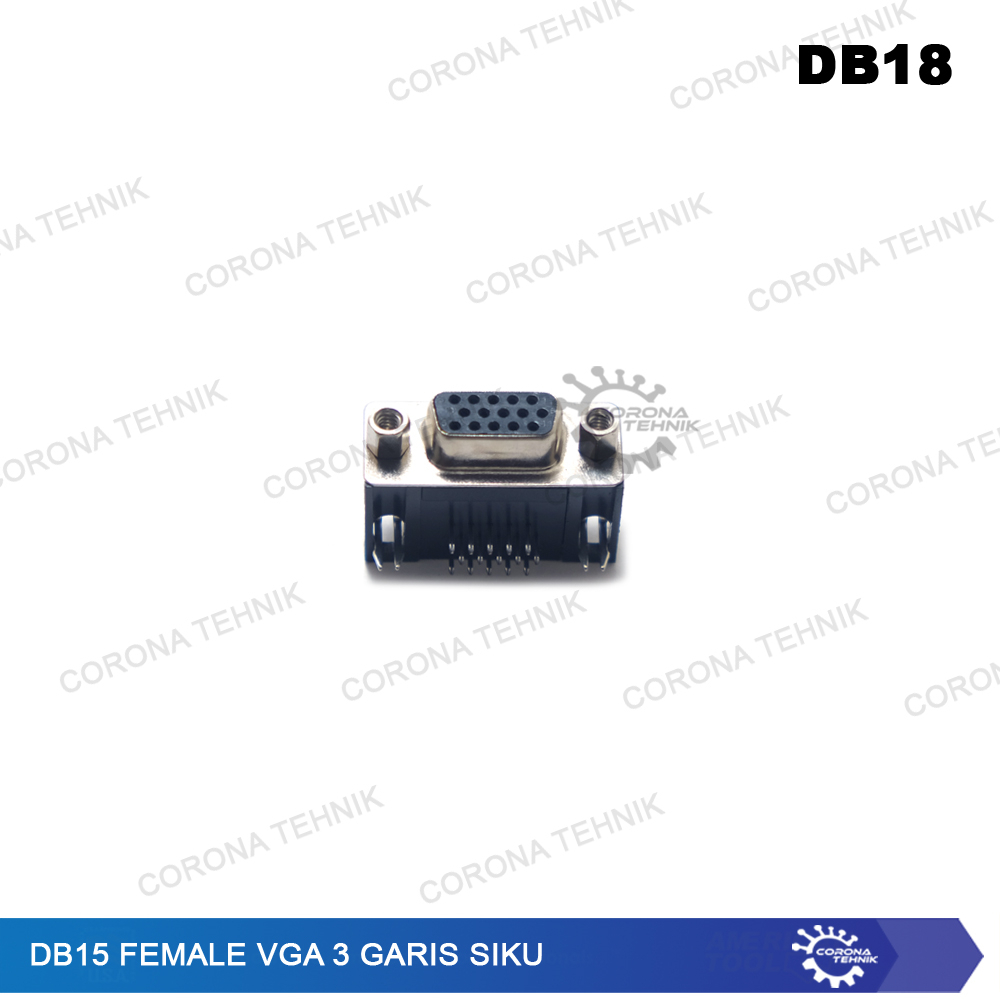 DB18 - Connector Konektor DB15 Female VGA 3 Garis Siku