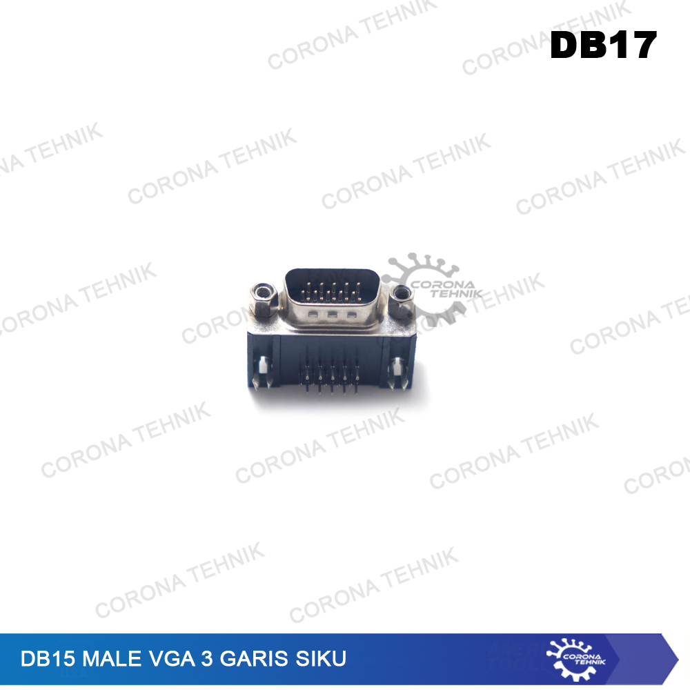 DB17 - Connector Konektor DB15 Male VGA 3 Garis Siku