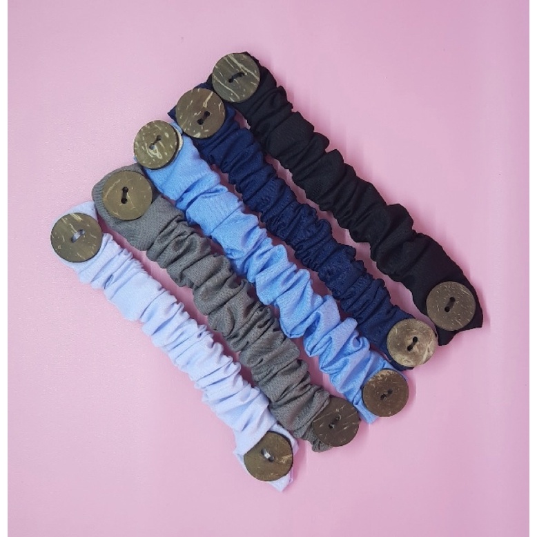 Spesifikasi : ➡️ Material : Kain Katun + Karet, Kancing ➡️ Kancing : Batok ➡️ Color : Banyak Varian Warna ➡️ Style : Hijab ➡️ Ukuran : 18 x 1,5 cm ➡️ Panjang Tali (min) : 18 cm ➡️ Panjang Tali (maks) : 35 cm ➡️ Setiap Konektor Sudah di kemas dengan Plastik