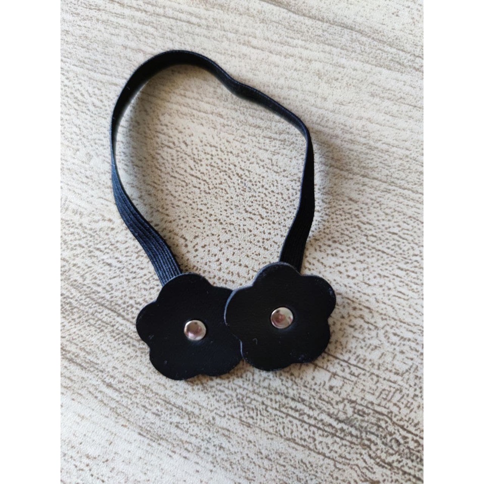KONEKTOR MASKER HIJAB ,TERBUAT DARI BAHAN KARET KWALITAS BAGUS , KOMBINASI APLIKASI BUNGA DARI BAHAN KULIT SINTETIS PANJANG SEBELUM DITARIK KURLEB 20 CM