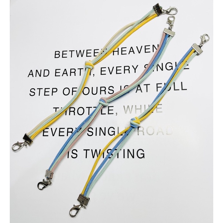 konektor masker tali elastis panjang 22 cm bahan tali elastis dapat ditarik up to 30 cm kait ujung kiri dan kanan ada model kait stainless dan kait plastik bisa request ukuran anak di 15 cm notes saja anak pada saat cekout