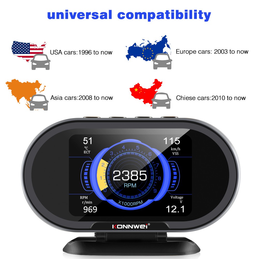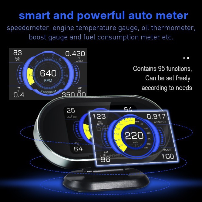 The KONNWEI KW206 OBD computer is a smart and powerful auto meter gauge. It is specially designed for vehicles to show all live data in one screen, It's a combination of speedometer, engine temperature gauge, oil thermometer, boost gauge, fuel consumption meter and so on.