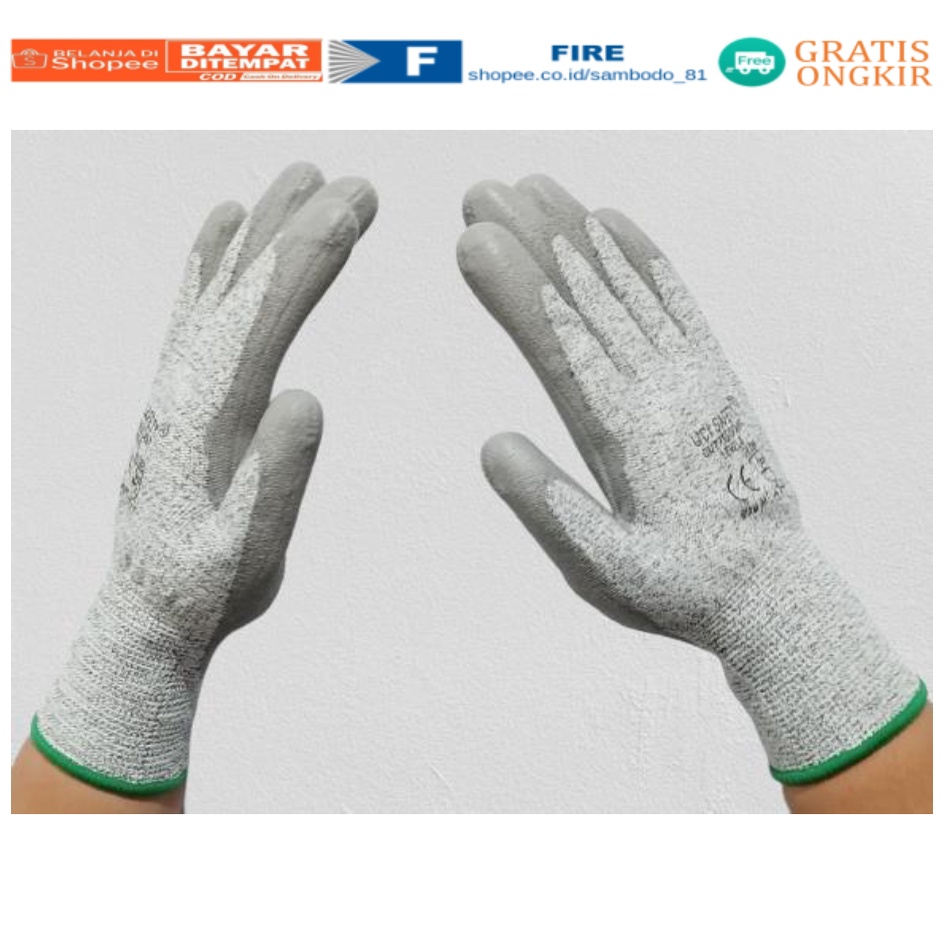 Kontruksi Welding Proyek bengkel Pengaman kerja Safety Gloves Kontruksi Welding Proyek bengkel Level 5 Tebal Sarung Tangan 4543 Anti Potong Cut Resistant safety Gloves Merupakan sarung tangan safety dengan bahan dasar nylon HPPE, yang dilapisi karet polyurethane pada telapak tangan dan ujung jari.