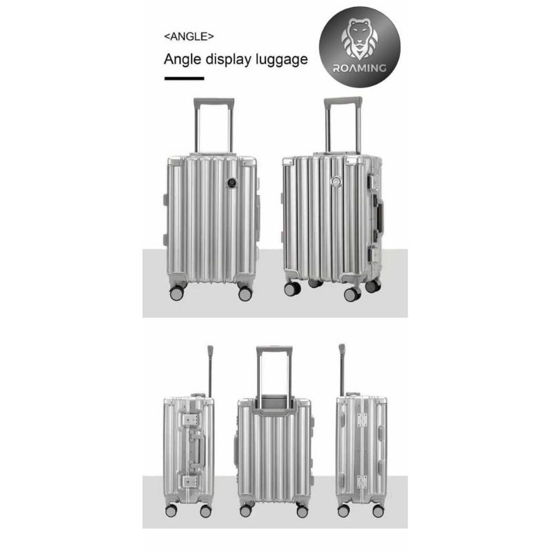 High Quality Import 100% Bahan Polycarbonite Anti Pecah Aluminium Frame TSA Lock 4 Roda berputar 360 Aluminium Stainless Trolly