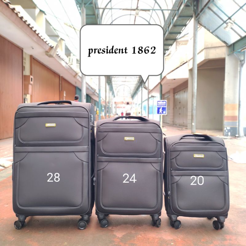 Video perkenalan produk Koper President Bahan Kain Kanvas (1420/1862) ORI / Koper Travel - 20" / 24"/28". Sumber: Shopee.