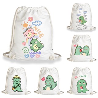 Tas Serut - Stringbag Cute Dino Kanvas Tebal Anti Air Tali Sumbu | Devva.id