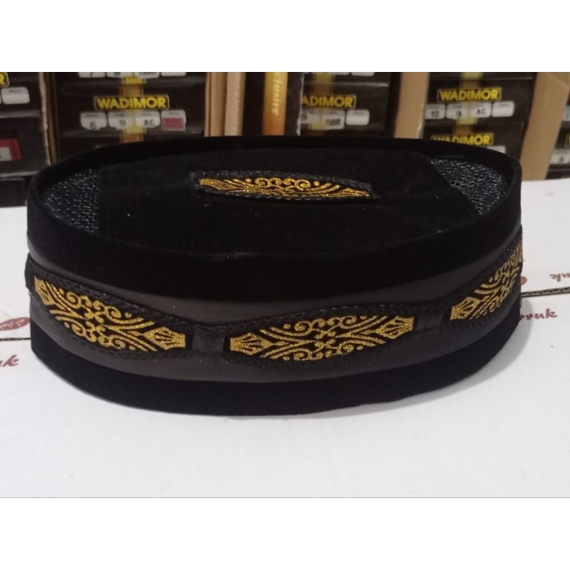 Detail Kopyah Kopiah Peci Songkok Hitam AC Motif Daun Emas Tinggi 10