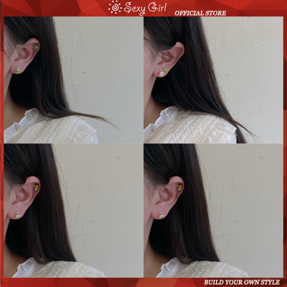 Aksesoris Fashion > Anting > Korea Anting Kecil Segar Set All-match Wanita Bunga Baru Daun Hijau Desain Rasa Anting Perempuan Boudoir Anting Madu Perhiasan Gadis Seksi