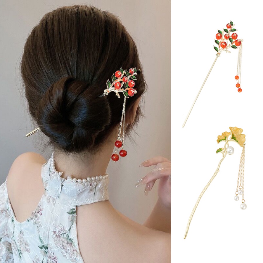 Detail Korea Baru Manik-Manik Kristal Jepit Rambut Logam Rumbai Rambut Tongkat Wanita Aksesoris Rambut
