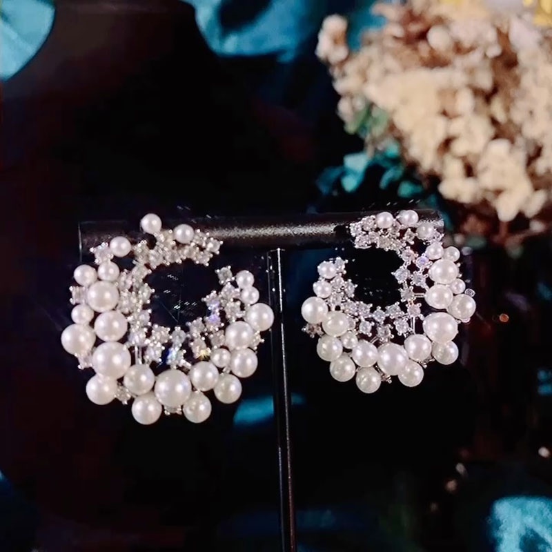 Detail Korea Berlian Imitasi Geometri Tidak Teratur Bulat Cahaya Mewah Berlebihan High-End Modis Berkelas Anting