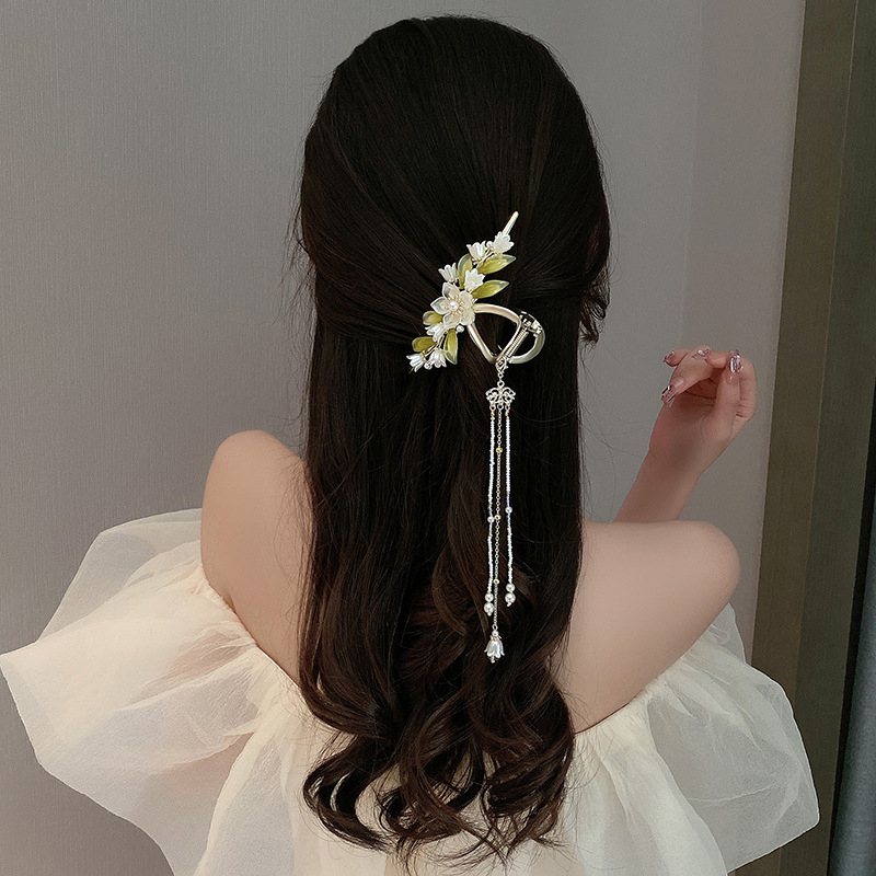 Detail Korea Berlian Imitasi Kristal Alloy Rambut Klip Rambut Cakar Mutiara Manik-Manik Rumbai Jepit Rambut Wanita Aksesoris Rambut