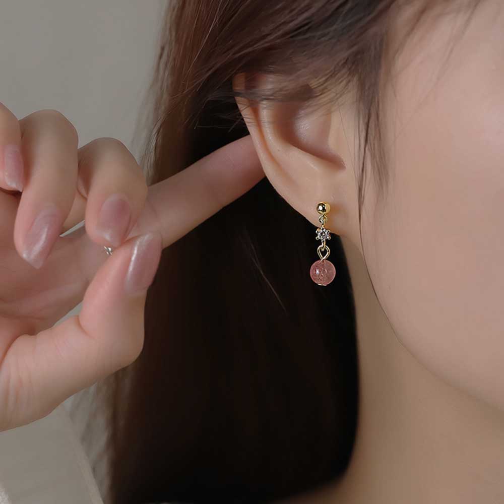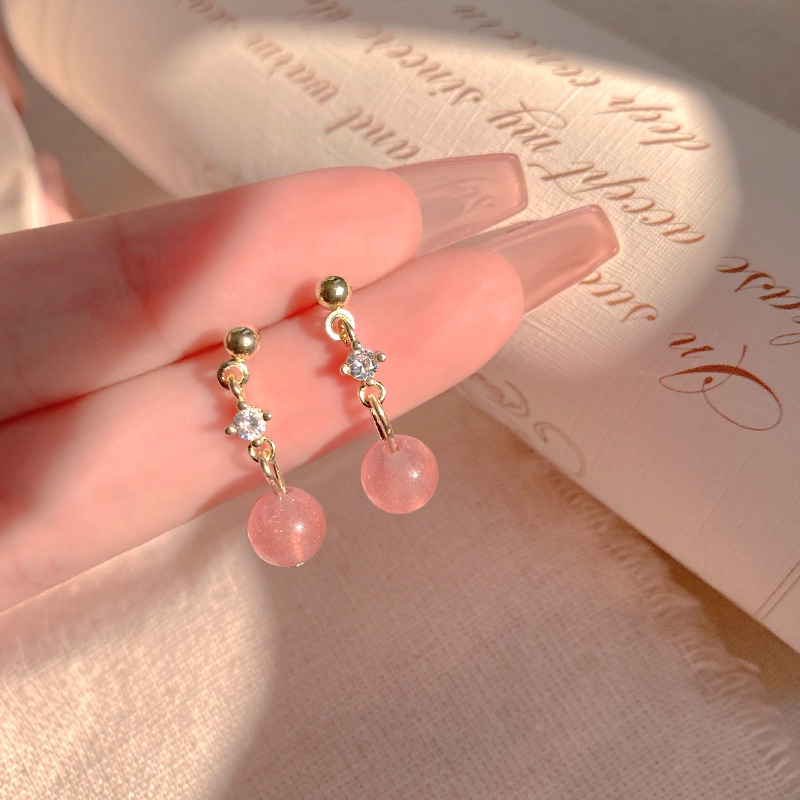 Aksesoris Fashion > Anting > Korea Elegan Indah Merah Muda Kristal Manik Telinga Pejantan Berlian Emas Baja Titanium Wanita Fashion Perhiasan Drop Earrings