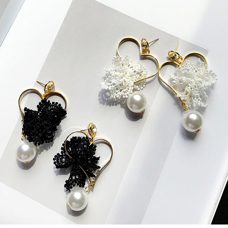 Detail Korea elegan jantung renda Pearl crystal anting-anting Korea fashionmonger panjang rumbai anting-ant
