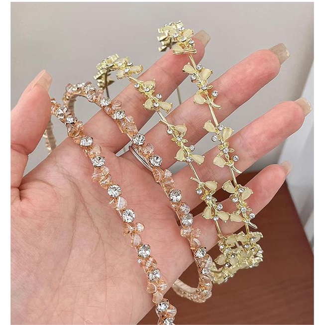 Aksesoris Fashion > Aksesoris Rambut > Bando & Bandana > Korea Fashion Gardenia Air Berlian Rambut Band Wanita Tepi Tipis Ditekan Rambut Band Ratus Tali Ikat Kepala