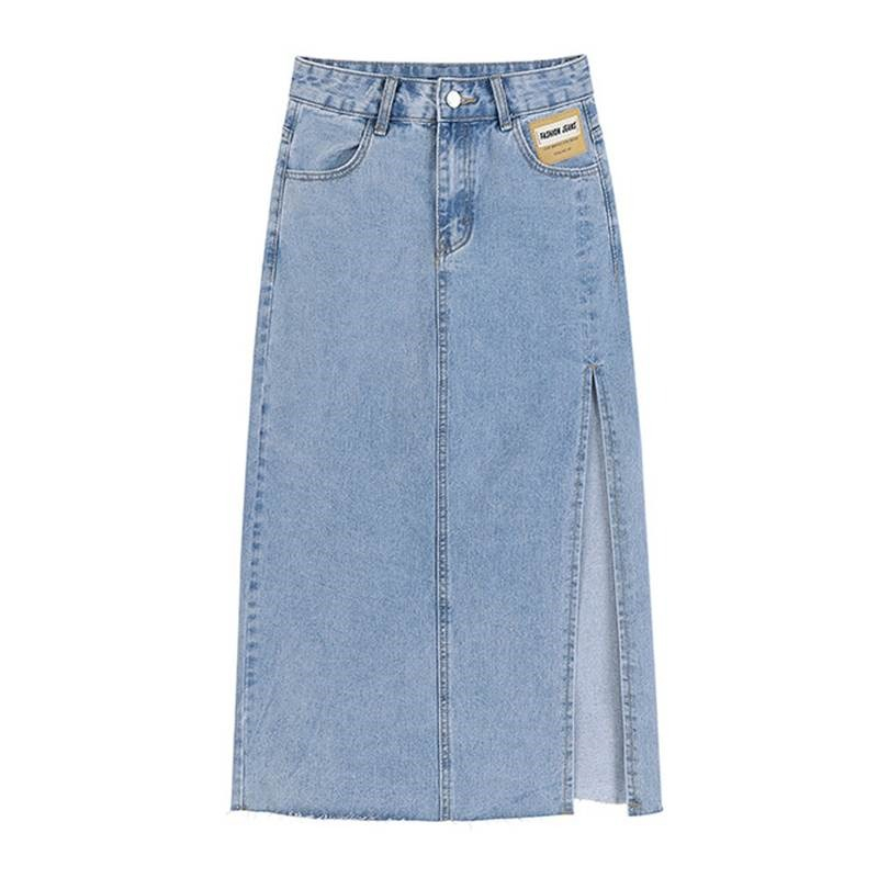 Detail Korea Highwaist A-Line Rok Jeans /Seksi Celah Samping Rok Jeans Wanita Kekinian