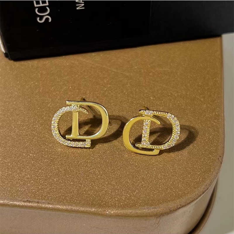 Detail Korea Indah Persegi S925 Silver Needle Stud Earrings Huruf CC Desain Baru Anting Berlian Untuk Wanita