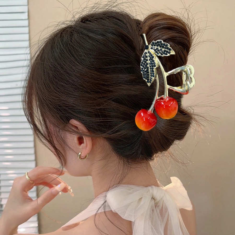 Detail Korea Logam Cherry Rambut Klip Mutiara Berlian Imitasi Wanita Ponytail Holder Clip Fashion Aksesoris Rambut