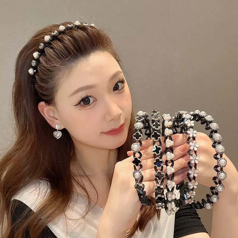 Aksesoris Fashion > Aksesoris Rambut > Bando & Bandana > Korea Mutiara Kepang Rambut Hoop Gelombang Hitam Sederhana Ikat Kepala