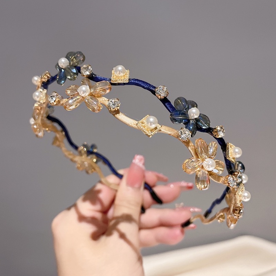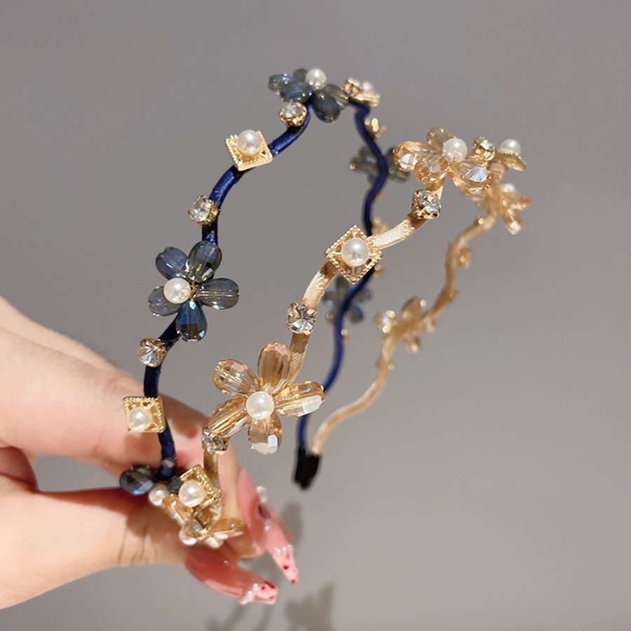 Detail Korea Mutiara Kristal Bunga Rambut Band Berlian Imitasi Bergelombang Headband Woman Wedding Hair Accessories