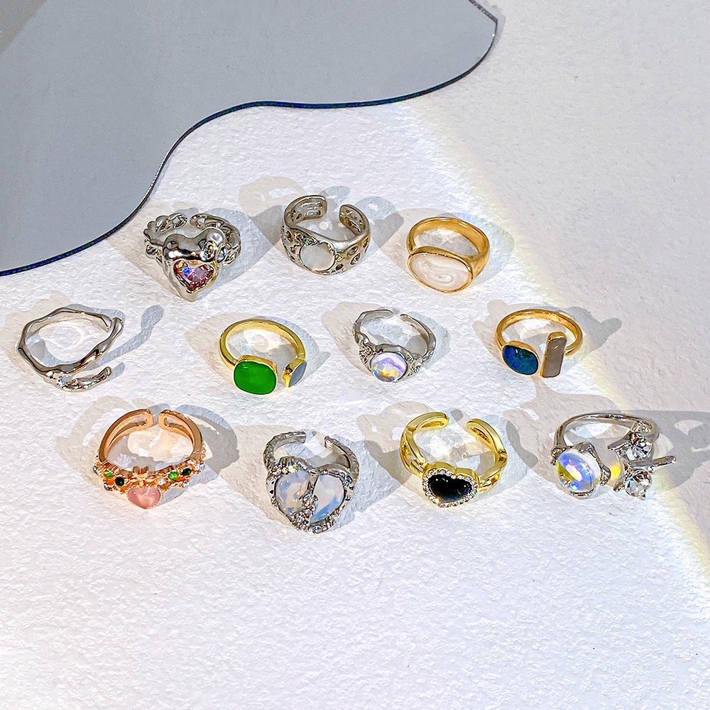 Aksesoris Fashion > Cincin > Korea Mutiara Kristal Set Cincin Opal Batu Permata Hati Kupu-Kupu Rings Resin Pasangan Cincin Untuk Wanita Aksesoris Perhiasan