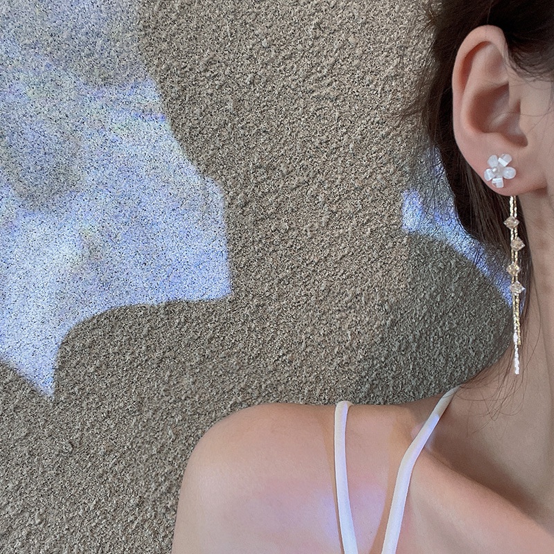 Detail Korea S925 Perak Lapis Emas Indah Bunga Rumbai Zirkon Stud Earing Untuk Wanita Fashion Perhiasan Aksesoris Drop Earrings