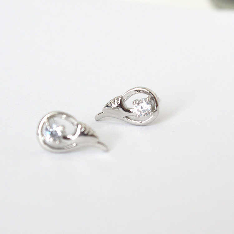 Detail Korea sederhana berlapis perak sayap zirkon warna melestarikan anting-anting Korea gaya chic dan uni