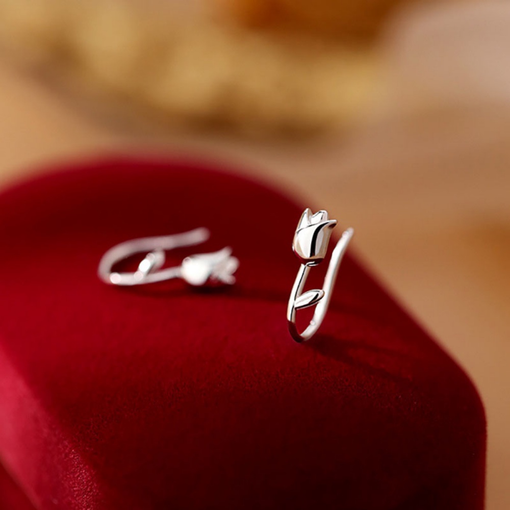 Aksesoris Fashion > Anting > Korea Sederhana Bunga Tulip S925 Sterling Silver U Shape Studs Earring Elegan Wanita Fashion Perhiasan Aksesoris Kait Anting Klip Telinga