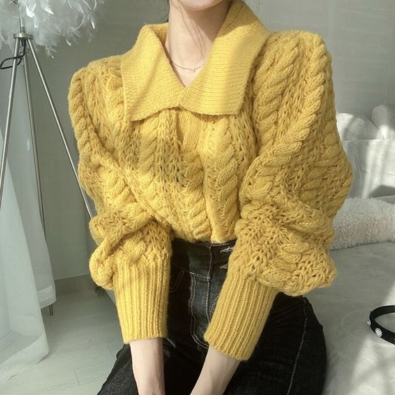 Pakaian Wanita > Batik > Atasan Batik > Korea Selatan chic manis mengurangi usia polo liar kerah industri berat twist menebal pullover longgar sweater rajutan berongga wanita