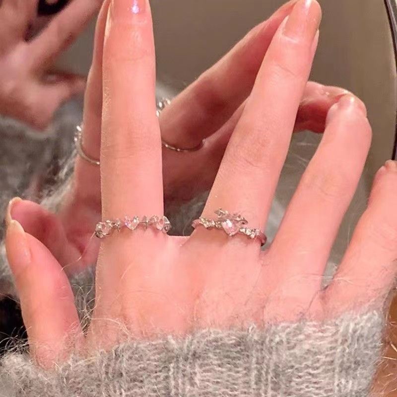 Detail Korea Style Wanita Merah Muda Hati Zirkon Kristal Cincin Titanium Berlian Fashion Perhiasan Aksesoris