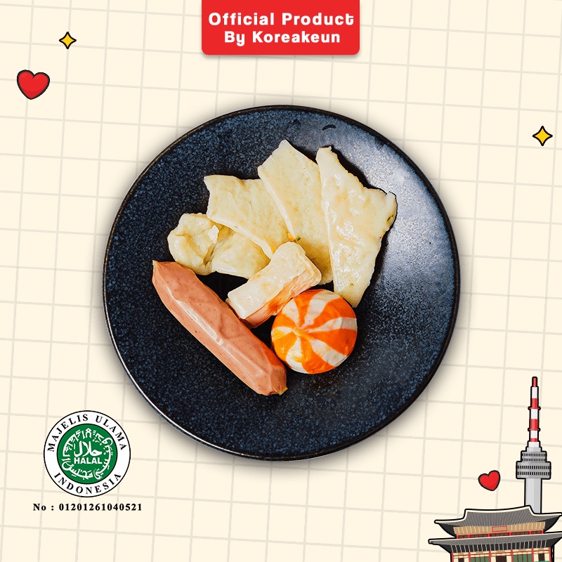 Topping sudah dalam kondisi tervacum aman dalam plastik Topping terdiri dari : - Odeng/Eomuk - Sosis - Chikuwa - Dumpling Cheese